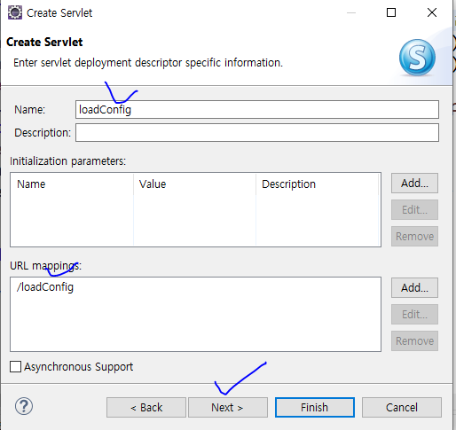 8. 첫 번째 매핑 이름은 /sInit으로, 두 번째 매핑 이름은 /sInit2로 입력하고 각각 OK를 클릭한다.