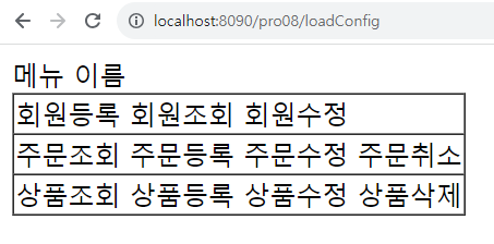 2. 톰캣을 다시 실행한 후 브라우저에서 /loadConfig로 요청한다. 실행 결과는 애너테이션으로 실행했을 때와 같다.